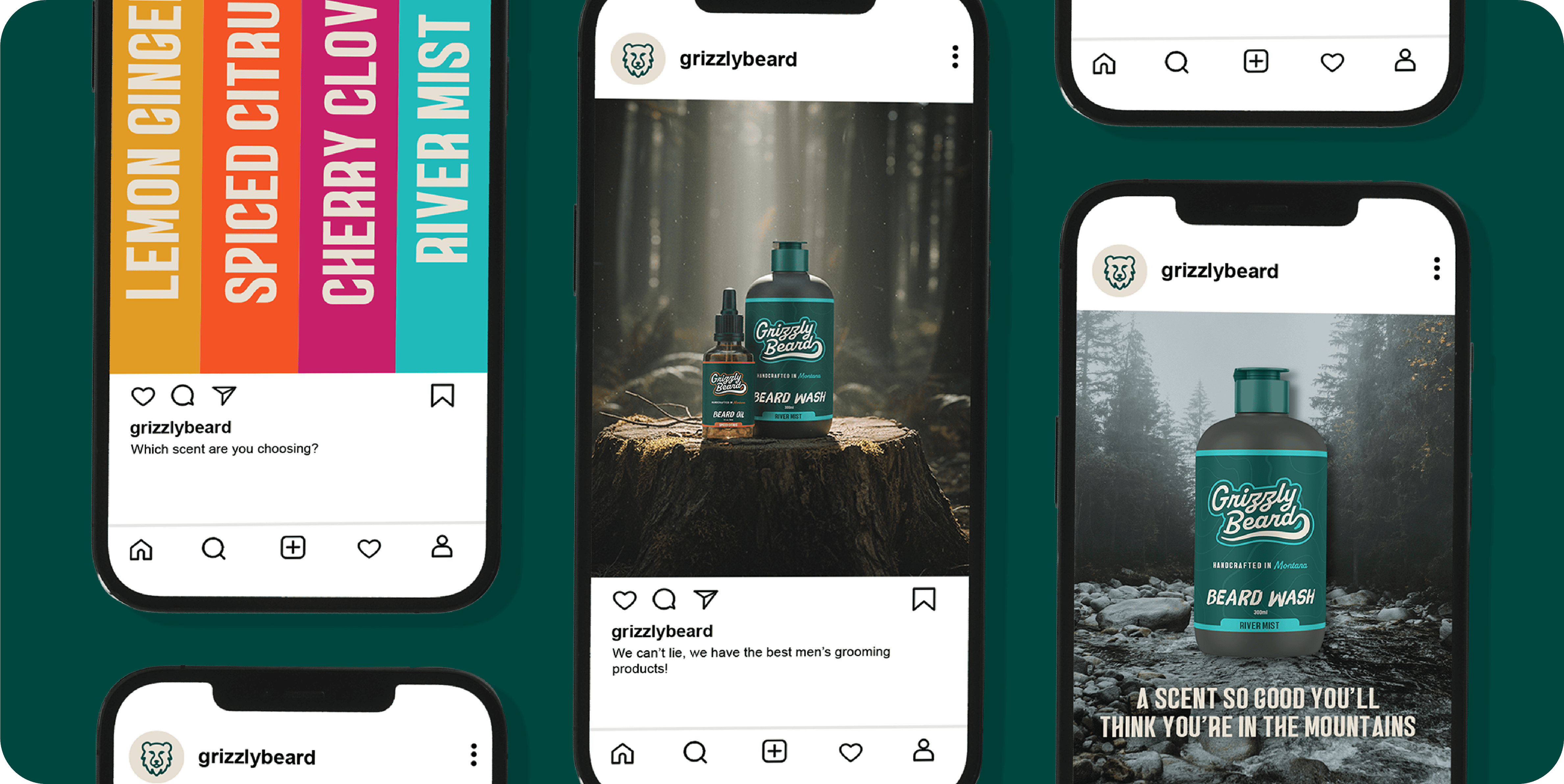 A modern look brought together with a bold color palette and subtle outdoor characteristics to tie in the ruggedness that a beard represents. I developed a logo and packaging for the brand. I created social media assets to lay the foundation for a brand awareness campaign.
